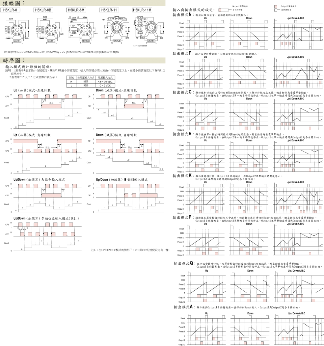 上一個 下一個 計數器 計數器 H5KLR 多功能數位式計數器 加入詢問單 開啟詢問單 產品說明 接線與時序圖 外型尺寸或其他 檔案下載 可外接使用近接開關或光電開關輸入。 具有極佳之抗雜訊性。 具有高速響應特性,計數速度可達每秒1,000次。 允許計數中改變設定值。 具有4個階層的按鍵鎖定功能。 可選擇其動作方式為上數(加數),下數(減數)或上下數(加減數)。 採用短體設計,其深度僅有64毫米(2.52英吋)。 具有斷電記憶,其記憶為永久性。 具有UL, C-UL 及 CE 認證。 H5KLR 產品型錄 H5KLR 使用手冊