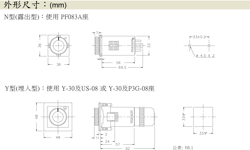 上一個 下一個 限時繼電器 類比式限時繼電器 AH3G 限時繼電器 加入詢問單 開啟詢問單 產品說明 接線與時序圖 外型尺寸或其他 檔案下載 具有LED指示燈,易於監視。 具有體積小,採DIN尺寸(36mm ×36mm)。 具有露出型(N Type)及埋入型(Y Type)可供選擇。 可適用於標準的8孔插座。 AH3G 產品型錄