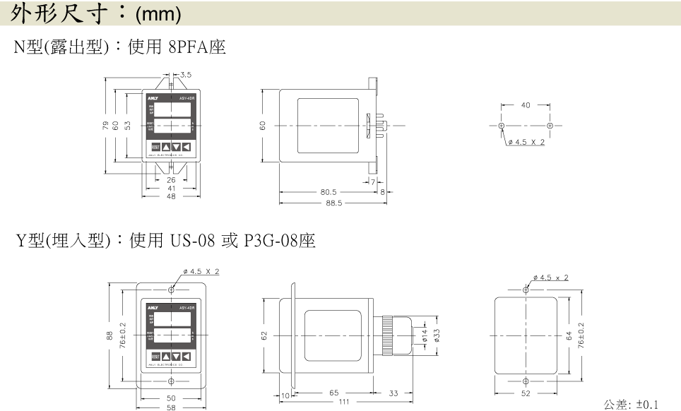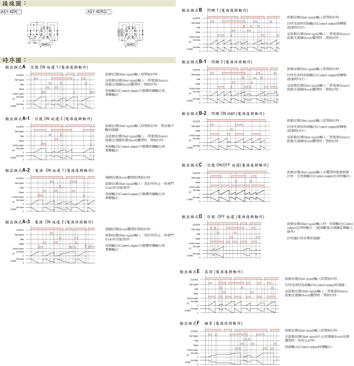 上一個 下一個 限時繼電器 數位式限時繼電器 ASY-4DR 多功能數位式限時繼電器 加入詢問單 開啟詢問單 產品說明 接線與時序圖 外型尺寸或其他 檔案下載 具有11種輸出模式可供選擇使用,可廣 泛應用於多種場合。 使用LED數字顯示,時間明確,易於監視。 各個功能參數可於面板上的循環式選單 中設定。 可選擇時間範圍,從0.001秒到9999小 時。 精密度可達0.001秒。 具有4個階層的按鍵鎖定功能。 可選擇其動作方式為上數(加數)或下數(減數)。 具有斷電記憶,其記憶為永久性。 具有CE認證。 ASY-4DR 產品型錄 H5CLR/ASY-4DR 使用手冊