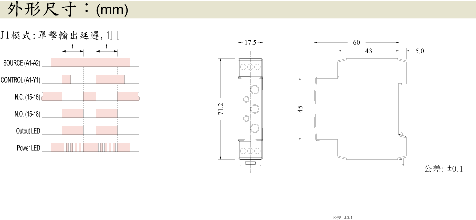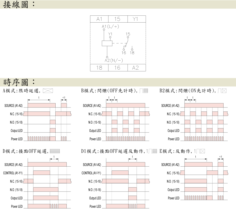 上一個 下一個 限時繼電器 類比式限時繼電器 H3D-M 多功能限時繼電器 加入詢問單 開啟詢問單 產品說明 接線與時序圖 外型尺寸或其他 檔案下載 支援廣泛操作電源,由AC 24V至240V,而DC 12V至240V。 具有7種輸出模式可供選擇使用,可廣泛應用於多種場合。 包含限時延遲,反動作,閃爍,閃爍反動作,接點OFF延遲,接點OFF延遲反動作,單擊輸出延遲。 具有7種可選擇時間範圍,從1秒到100小時。 採用窄體設計,約17.5mm。 具有UL, C-UL 及 CE 認證。 H3D-M 產品型錄 H3D-M 使用手冊