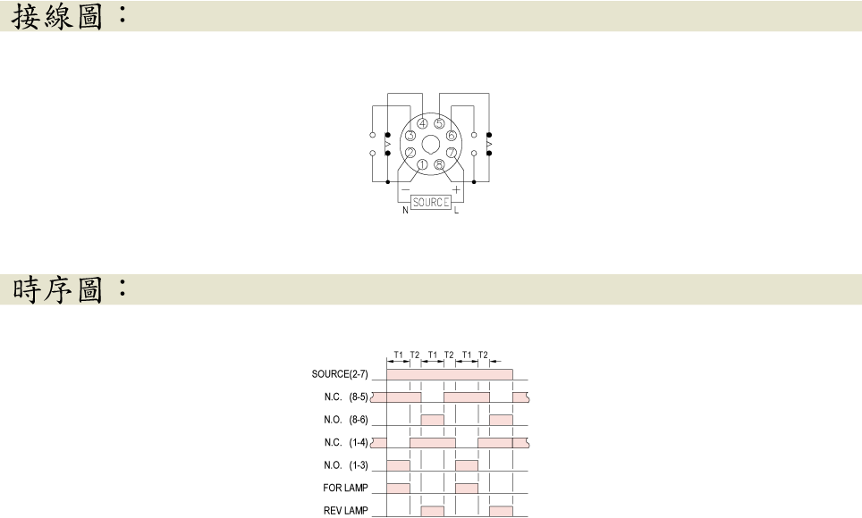 限時繼電器 正逆轉用繼電器 TWB-N/TWB-ND 正逆轉用繼電器 加入詢問單 開啟詢問單 產品說明 接線與時序圖 外型尺寸或其他 檔案下載 使用專用CMOS IC,具省電、穩定及準確之特性。 具有對稱式之往復動作。 具有獨立接點,可控制正轉或逆轉。 可依使用者之需求訂製其中間停頓時間。 亦可依使用者之需求訂製其運轉時間。 具有兩只指示燈,動作情況易於監視。 具有CE認證。 TWB-N/TWB-ND 產品型錄