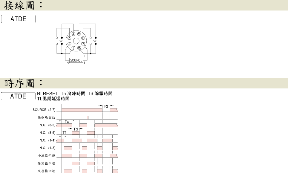 上一個 限時繼電器 冷凍除霜繼電器 ATDE 冷凍除霜繼電器 加入詢問單 開啟詢問單 產品說明 接線與時序圖 外型尺寸或其他 檔案下載 為冷凍設備專用控制器。 其冷凍–除霜為自動循環控制。 具有風扇延遲啟動時間設定。* 具有強制除霜按鍵。* 註:有*號者表示只適用於ATDE系列。 TDF/ATDE 產品型錄