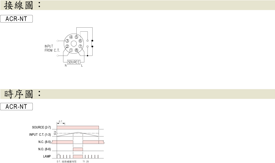 上一個 保護繼電器 電流保護繼電器 ACR-NT 電流保護繼電器 加入詢問單 開啟詢問單 產品說明 接線與時序圖 外型尺寸或其他 檔案下載 使用專用CMOS IC,具省電、穩定及準確之特性。 支援廣泛電流範圍2~7安培。 具有電流過高指示燈,易於監視。 其復歸電流值為低於工作值的5%以下。 具有露出型(N Type)及埋入型(Y Type)可供選擇。 ACR 產品型錄